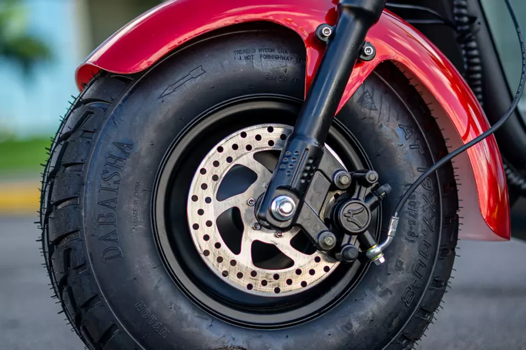 A PT2 possui rodas de liga leve, oferecendo mais resistência e leveza, a roda dianteira e traseira conta com aro 8. Além disso, os seus freios são à disco, possibilitando uma frenagem mais eficiente e rápida.