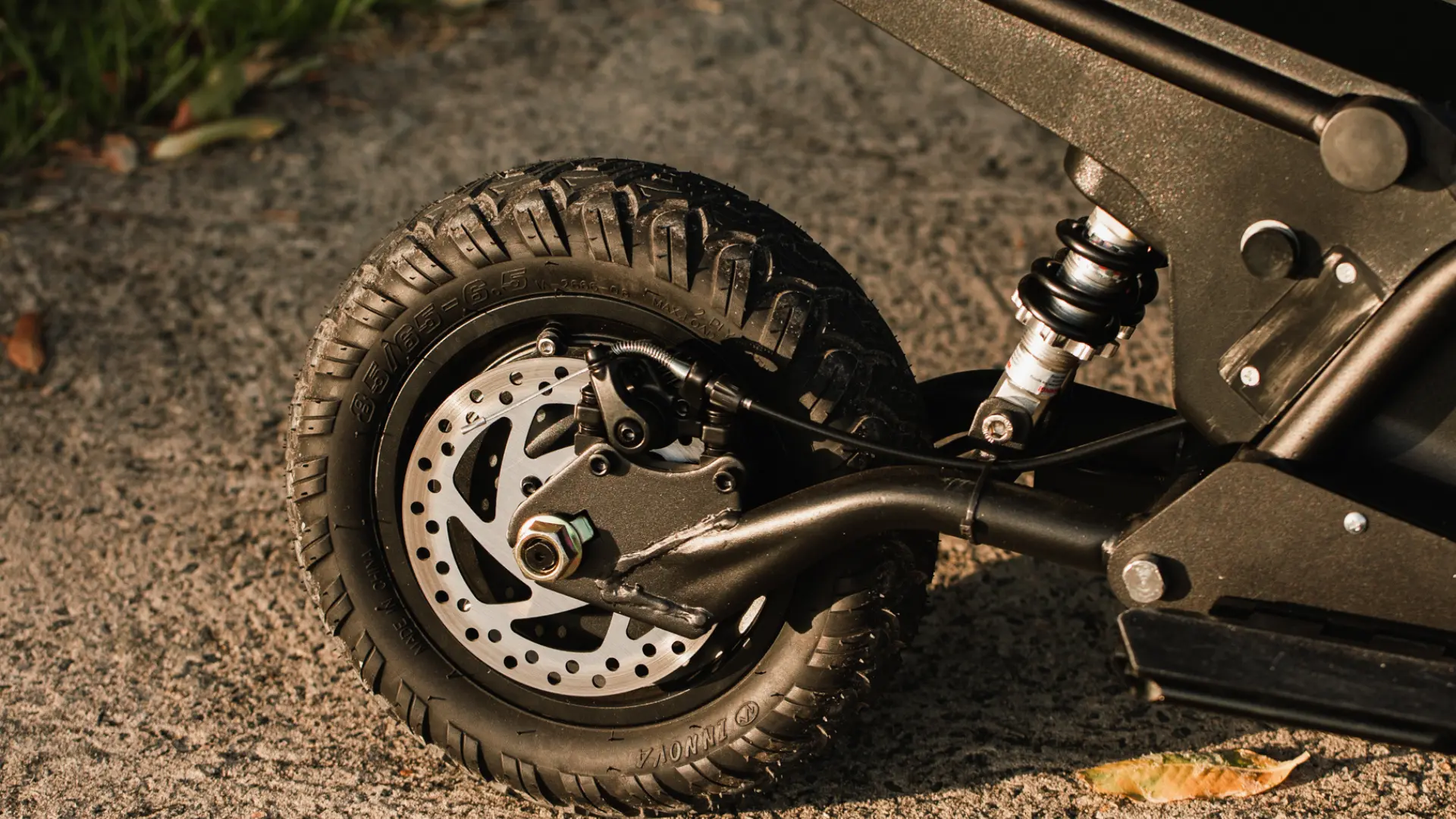 O PTXR possui rodas de liga leve, oferecendo mais resistência e leveza, na roda dianteira e traseira conta com aro 6,5´´. O freio dianteiro é à disco, garantindo uma frenagem mais rápida e segura.