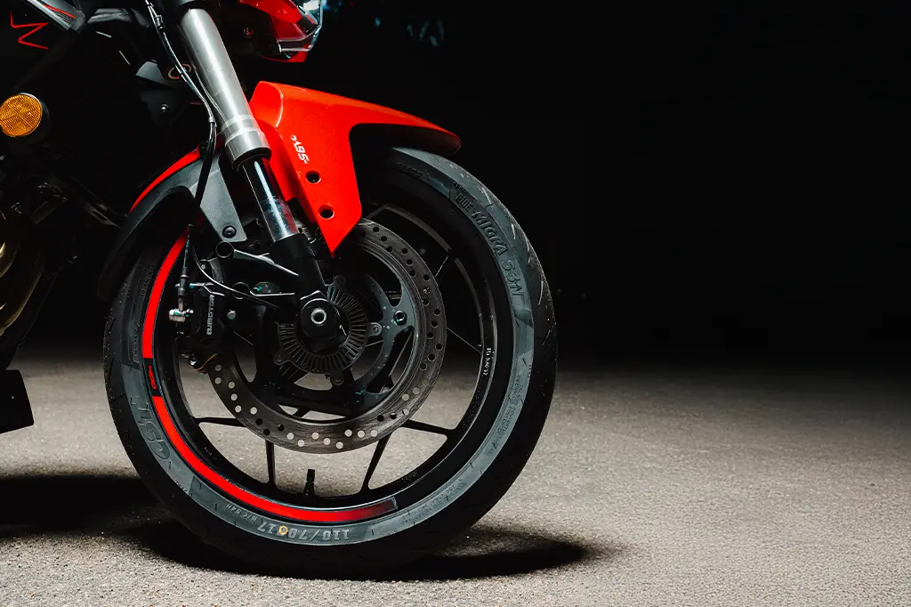 As rodas de liga leve da SBM 400s garantem agilidade e estabilidade em qualquer curva, enquanto o sistema ABS de duplo canal oferece frenagens seguras e total controle, para garantir emoção e segurança na sua rotina.