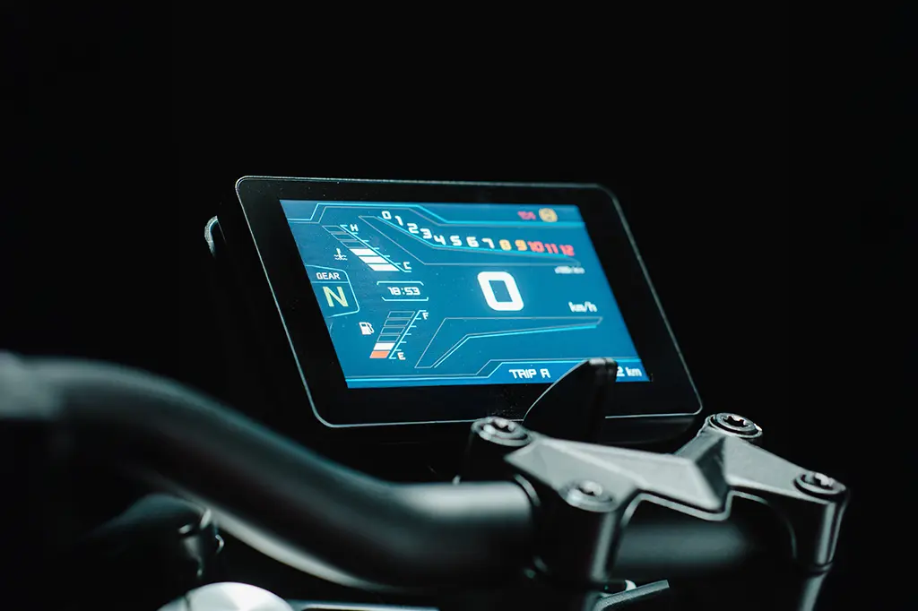 Com painel TFT, a SBM 400s oferece informações claras e de fácil leitura, mantendo você no controle total da pilotagem. Moderno e intuitivo, ele complementa a experiência da moto.