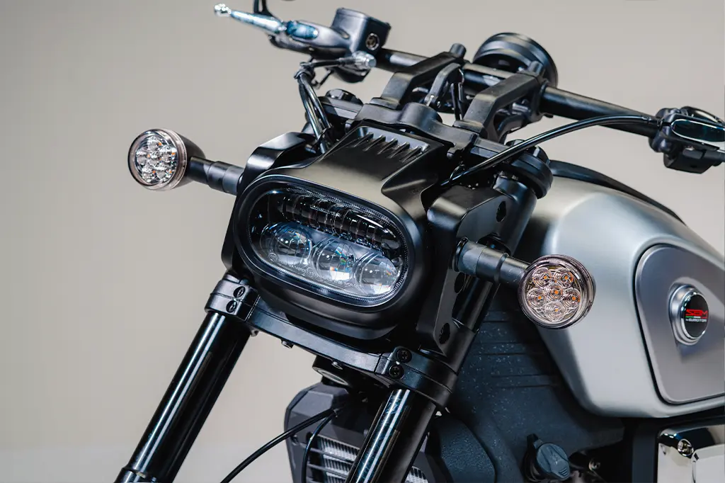 A SBM 600V possui rodas de liga leve que garantem estabilidade e resposta precisa em cada movimento. Já o sistema de freios, com duplo disco na dianteira e disco traseiro, eleva o controle em qualquer situação. O ABS de duplo canal completa o conjunto, entregando segurança constante, enquanto o controle de tração trabalha para manter a pilotagem sempre equilibrada e confiável.