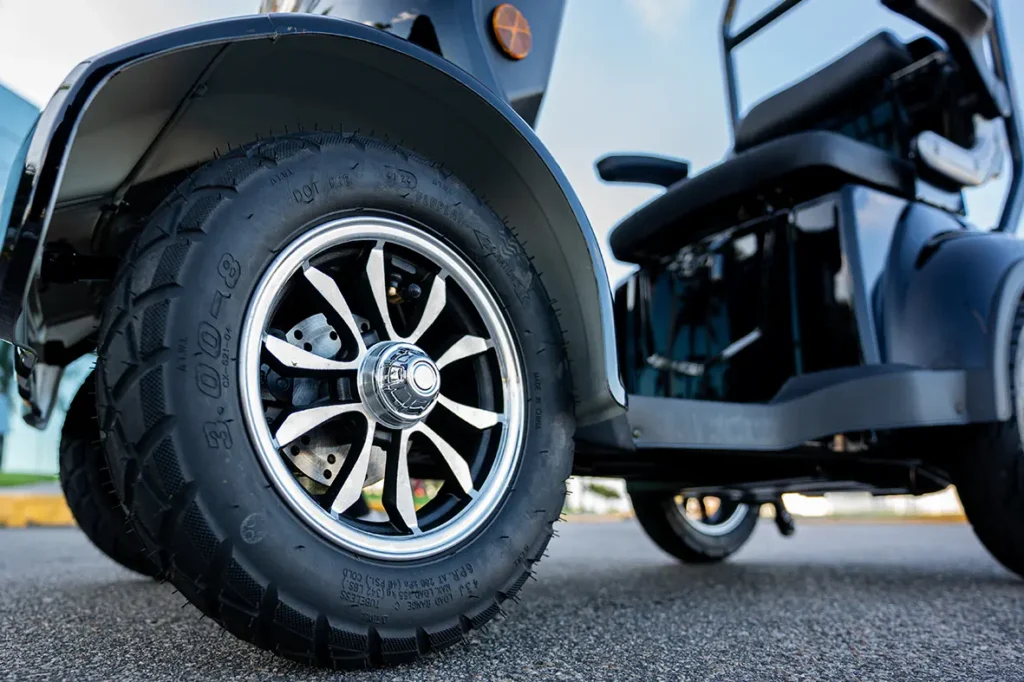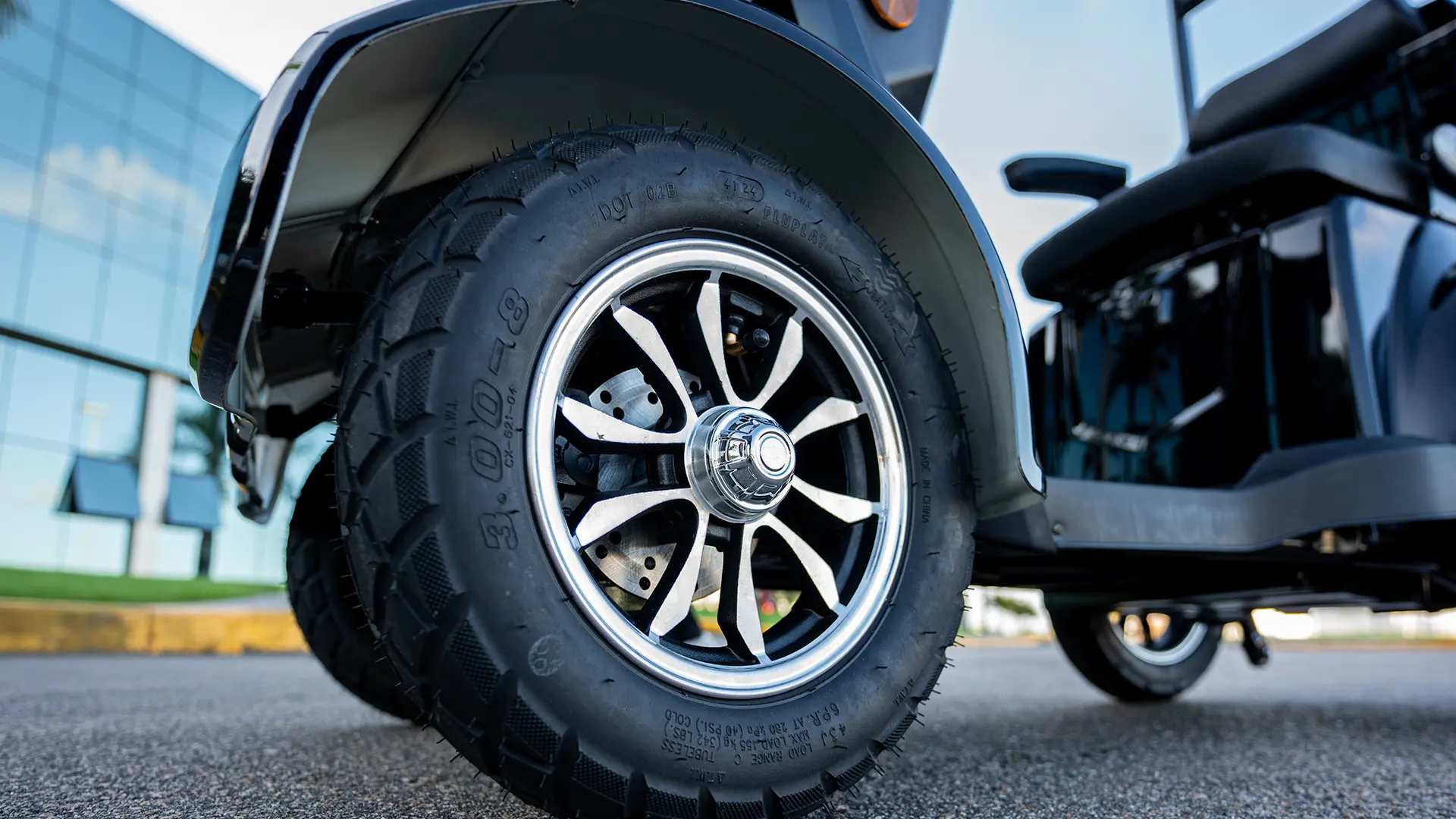 O SH4 possui rodas de liga leve, oferecendo mais resistência e leveza, na roda dianteira conta com aro 8´´ e traseira conta com aro 10´´. O freio dianteiro é à disco, garantindo uma frenagem mais rápida e segura.